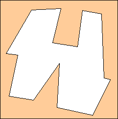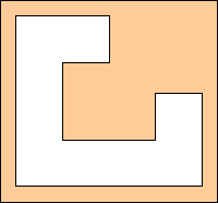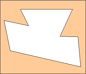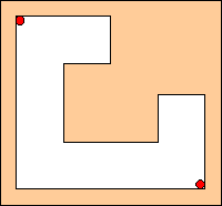 Se invece la pianta è un poligono concavo, cioè ha delle "rientranze", allora un solo guardiano potrebbe non essere sufficiente. Nella figura, per esempio, il guardiano può vedere tutto il locale tranne la zona colorata di grigio. |