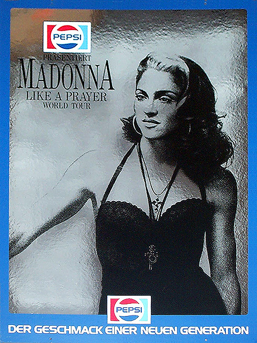 Pepsi It is a in-store sign that was to advertise Madonna's upcoming Pepsi-sponsored "Like A Prayer" World tour