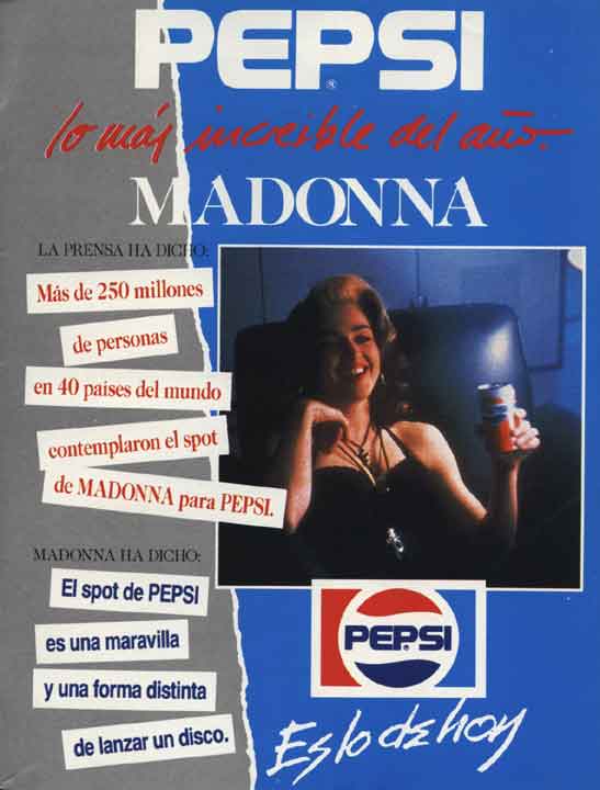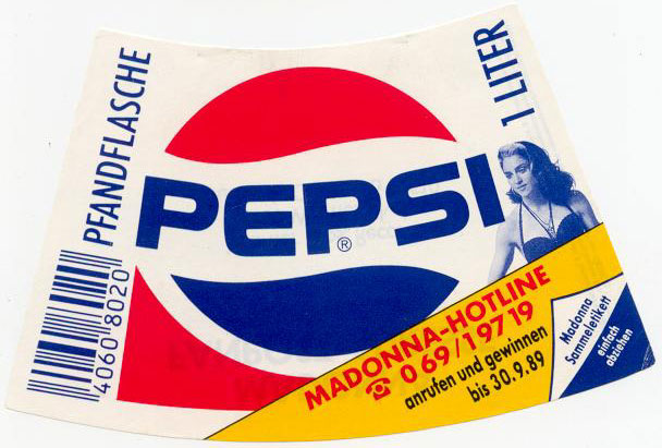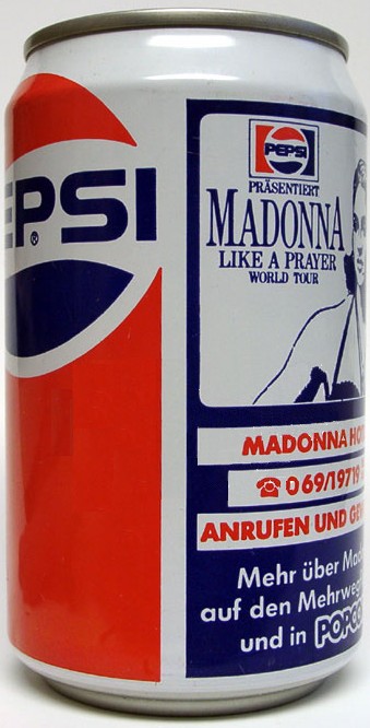 The year 1989 saw the rise of the "Madonna Controversy." Pepsi reportedly paid Madonna $5 million for a world-wide promotional campaign tied to her song "Like A Prayer". Pepsi however did not see her video for the song until after the campaign began and promptly pulled the Madonna Pepsi commericals due to her use of burning crosses and other controversial images in her video clip.
