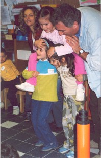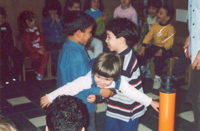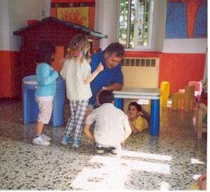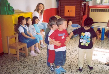 E' un gioco bellissimo, a cui tutti giocano volentieri mettendo nel calderone della storia da inventare gli oggetti simbolici dei loro affetti, desideri, o anche delle loro paure: allora un gattino nero viene chiamato Buio (Elvis, di quattro anni, il suo gatto l'aveva chiamato così), ed Eleonora di cinque anni racconta che il fuoco del caminetto balla coi salti azzurri.