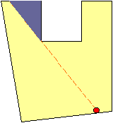 Se invece la pianta è un poligono concavo, cioè ha delle "rientranze", allora un solo guardiano potrebbe non essere sufficiente. Nella figura, per esempio, il guardiano può vedere tutto il locale tranne la zona colorata di grigio. |