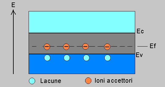 Anche in questo caso l'agitazione termica, a temperatura ambiente, è sufficiente perchè ogni atomo accettore si ionizzi negativamente, lasciando tale carica intrappolata nel reticolo.