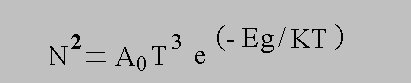 Fig 2.1.1 - N esprime la densità di cariche che hanno una energia superiore ad Eg = Ec - Ev che corrisponde al valore della banda proibita, A0 è la densità di cariche complessive, K è la costante di Boltzmann e T la temperatura in °Kelvin.