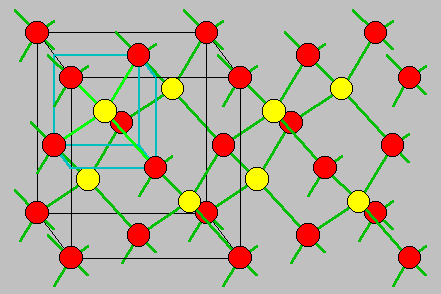 Fig 2.2.2 - Struttura cristallina dei semiconduttori composti da elementi del III - V gruppo della tavola degli elementi, quali ad esempio GaAs e InP.