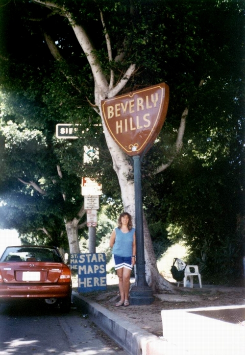 Lory sulla Sunset Avenue, all'ingresso di Beverly Hills a Los Angeles