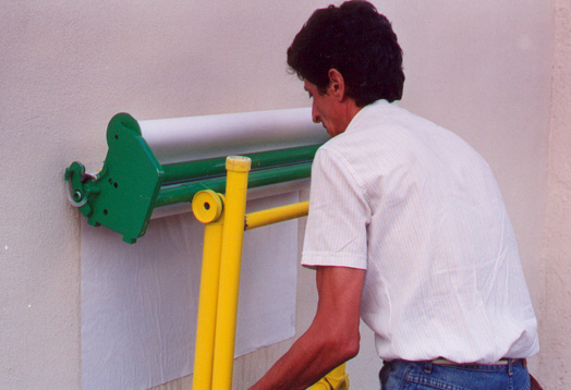 device functions with roll system,whose rools permits the glue